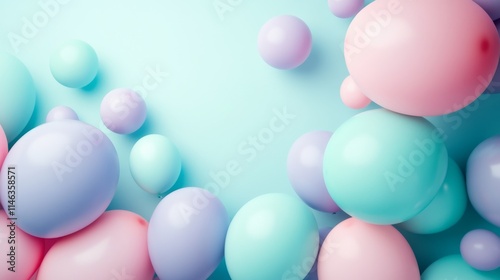 Modern balloon garland, candy-colored palette, mint lavender and blush tones, clean minimalist style, professional photography lighting, smooth matte finish, overlapping balloon shapes, sophisticated