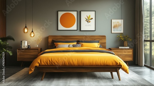 Modern Bedroom Furniture with Yellow Accent Pillows