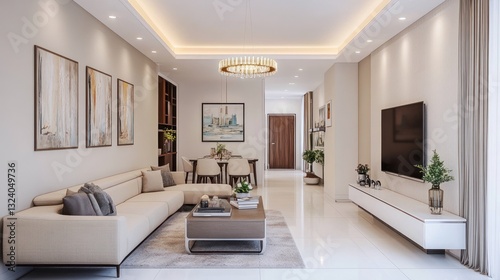 Modern beige living room interior design