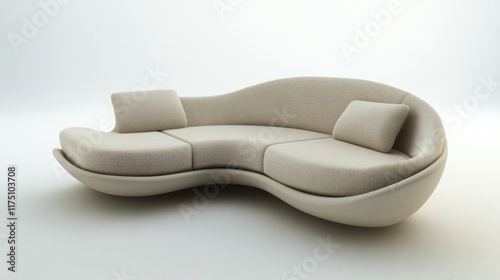 Modern beige sofa, curved design, studio background, interior design