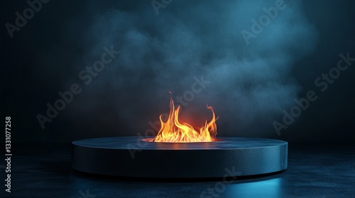 Modern Bio Fireplace. Ethanol Fire. Home Decor & Interior Design Element. Minimalist Stylish Fireplace On Dark Background With Smoke.