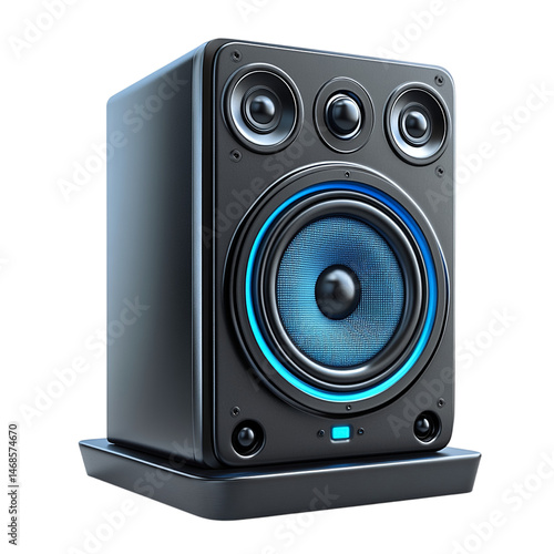 Modern Black and Blue Audio Speaker Set Isolated on White Background