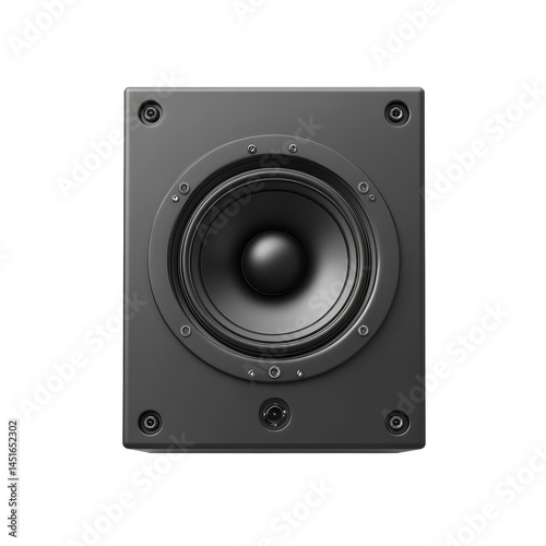 Modern black audio loudspeaker in a minimalistic setting on a transparent background, black audio loudspeaker isolated on transparent background