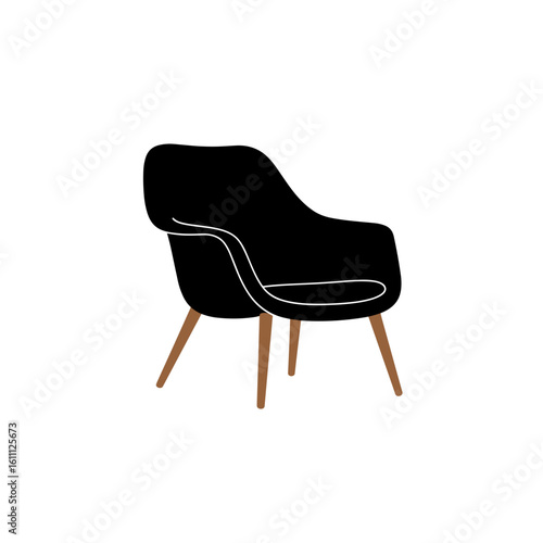 Modern black chair with wooden legs in minimalist design