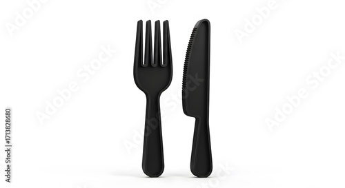 Modern Black Fork and Knife Set on White Background.