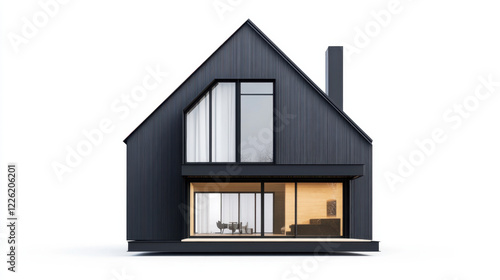 Modern black house with large windows and minimalist design, showcasing sleek exterior and inviting interior space. Perfect for contemporary living