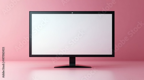 Modern black monitor on a pink background