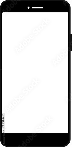 Modern black vector illustration of mobile gadget - Flat drawing modern smartphone. Phone display with white screen isolated. Transparent screen modern smartphone design. Smartphone vector icon