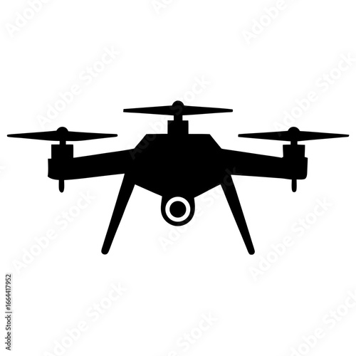 Modern Black Vector Silhouette of a Drone Flying in Flat Minimal Style, Isolated on White Background