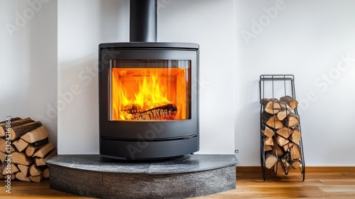 Modern Black Wood Burning Stove Fireplace Warm Cozy Interior Design