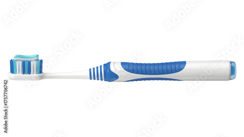 Modern blue and white toothbrush with toothpaste ready for a clean smile