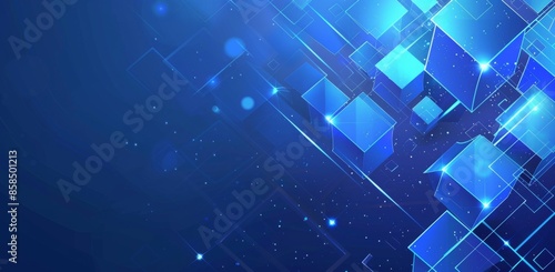 Modern Blue Geometric Background with Cubes and Lines for Business Technology or Digital Marketing