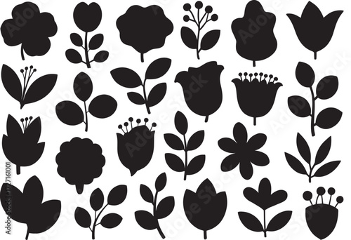 Modern Botanical Elements Collection: Abstract Floral and Leaf Silhouettes