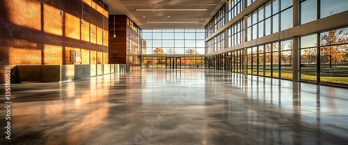 Modern Building Interior with Sunlight and Polished Concrete Floor