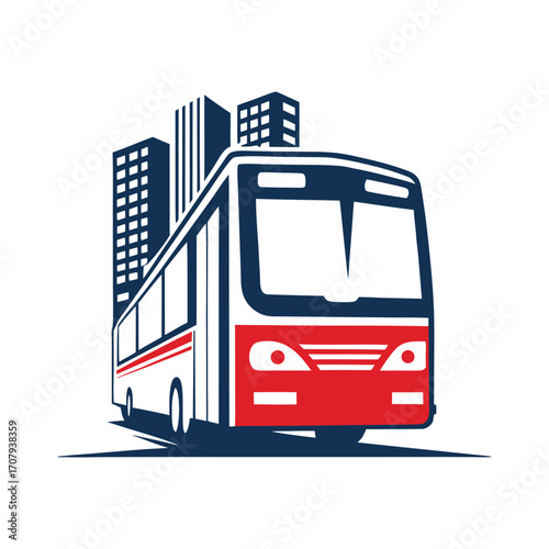 Modern Bus and City Skyline Icon
