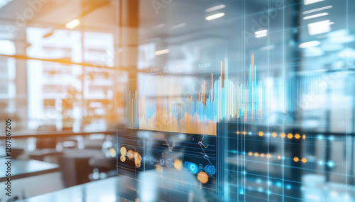 Modern Business Analytics Dashboard Data Visualization on Glass Screen