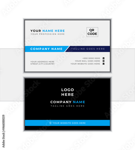 Modern business card template with blue,black & white colors. Flat design vector abstract creative - Vector