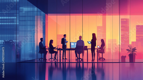 Modern business meeting in a sleek glass-walled office