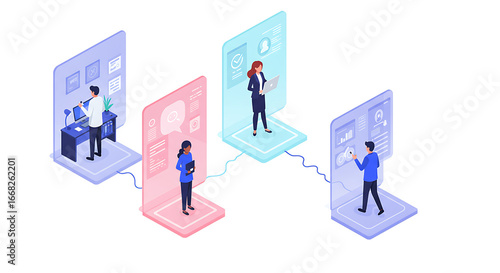Modern Business Team Collaboration Across Digital Interfaces - Remote Work and Global Data Network Connectivity