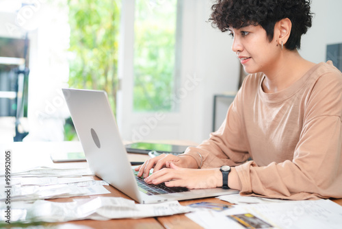 Modern Businesswoman Working from Home, Young Female Entrepreneur Using Laptop for Freelance Projects in Cyberspace, Embracing Technology Communication for a Flexible Lifestyle, Online Business