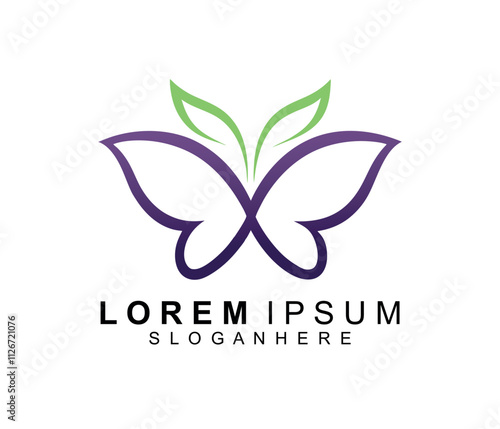 modern Butterfly logo design Premium butterfly green leaf symbol vector template