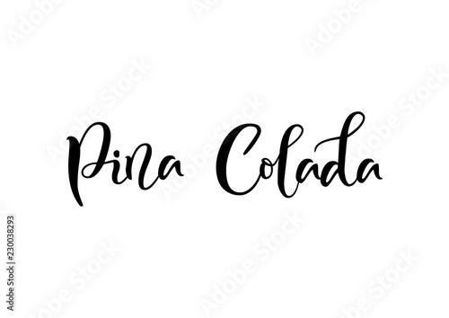 Modern calligraphy lettering of Pina Colada in black isolated on white background for bar menu, cocktail menu, advertisement, cafe, restaurant, packaging, flyer