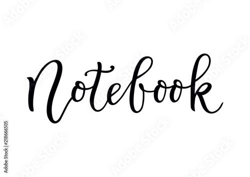 Modern calligraphy of Notebook in black isolated on white background for cover, notebook, decoration, scrapbooking, decoupage