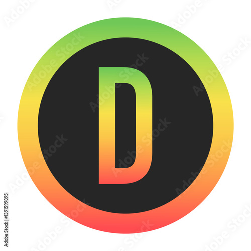 Modern Capital Letter D design with a red-to-green gradient border on a black background. Ideal for branding, logos, or minimalist design projects.