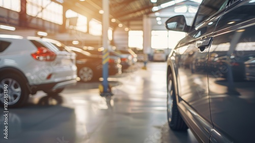 Modern car parked in spacious garage, ready for trade-in, showcasing clean and well-maintained interior.