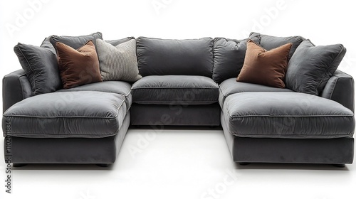Modern Charcoal Gray Sectional Sofa with Plush Cushions on White Background