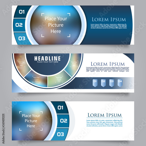 Modern Circle Style Banner Template Design. Multimedia Banner Template with Option Button and Blank Space for Pictures