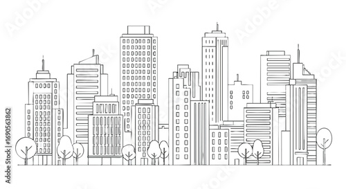 Modern city skyline illustration for architectural designs and urban development projects ideal for layouts or templates