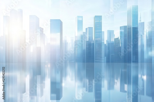 Modern City Skyline with Glass Buildings and Reflections in Water