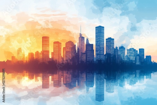 Modern Cityscape with Abstract Business Design, Generative AI