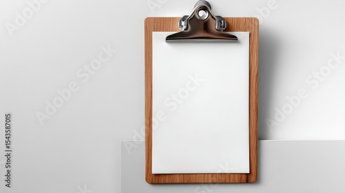 Modern Clipboard with Empty Sheet of Paper Resting on Clean Surface, Ideal for Notes, Plans, Ideas, Lists, and Other Written Content in Minimalist Style