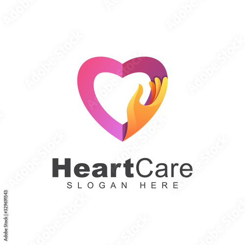 Modern color heart care or love hand logo, love family logo design vector template