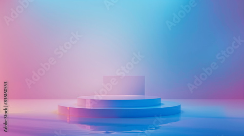 Modern Color Podium Display: Realistic 4K Photo on Glossy Blue Surface