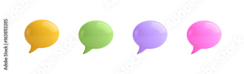 Modern Colorful Array of Glossy Speech Bubbles Isolated on Transparent Background