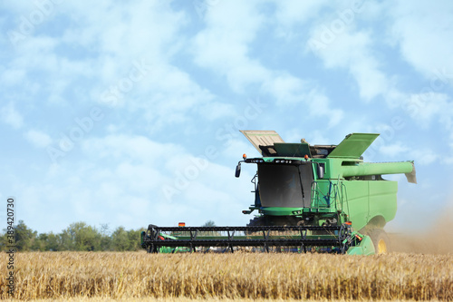 Modern combine harvester working in agricultural field
