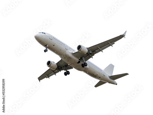 Modern commercial airplane isolated on transparent background — perfect PNG for aviation, travel, tourism, business flights, air transport, and flight-related visuals.