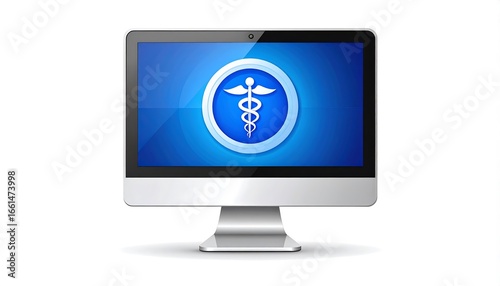 Modern Computer Displaying Medical Symbol for Healthcare and Digital Medicine