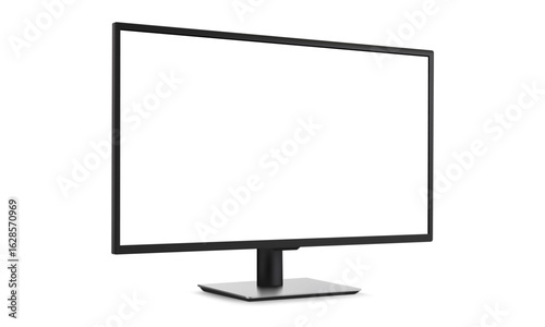 Modern computer monitor with blank white screen on stand. Realistic mockup for UI design, website display, tech branding or digital presentation. Isolated on white background