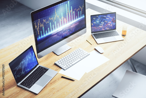 Modern computer screen with abstract financial diagram, banking and accounting concept. 3D Rendering