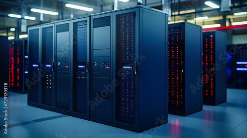 Modern computing environment with server racks and high-tech equipment, emphasizing the importance of data storage and network security in a digital age