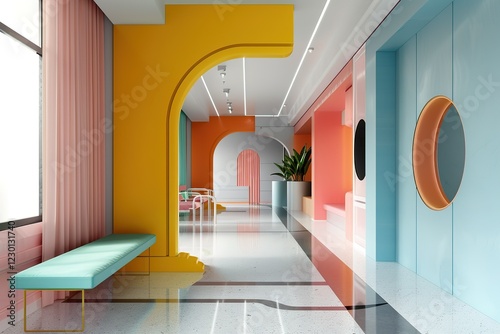 modern conceptual Luxury with Artistic and eclectic stylish empty hospital room with unique decor and a pop of color