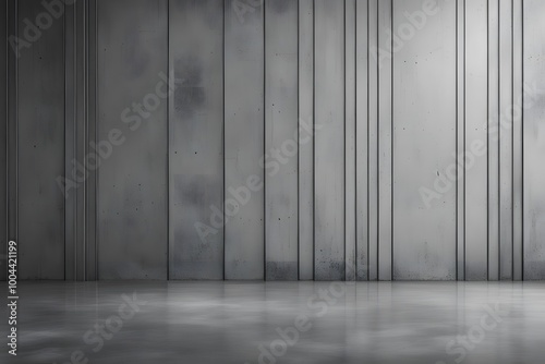 Modern concrete wall with vertical grooves separated from a polished concrete floor, AI Generated