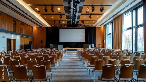 Modern Conference Room Auditorium Empty Chairs Meeting Venue Presentation
