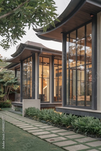 Modern Contemporary Home with Floor-to-Ceiling Windows and Beautiful Landscaping
