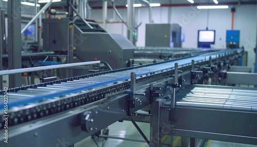Modern conveyor system in a production facility, showcasing efficient automated machinery.