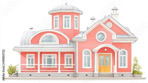 Modern Coral House with Unique Architecture and Charming Details in a Minimalist Style